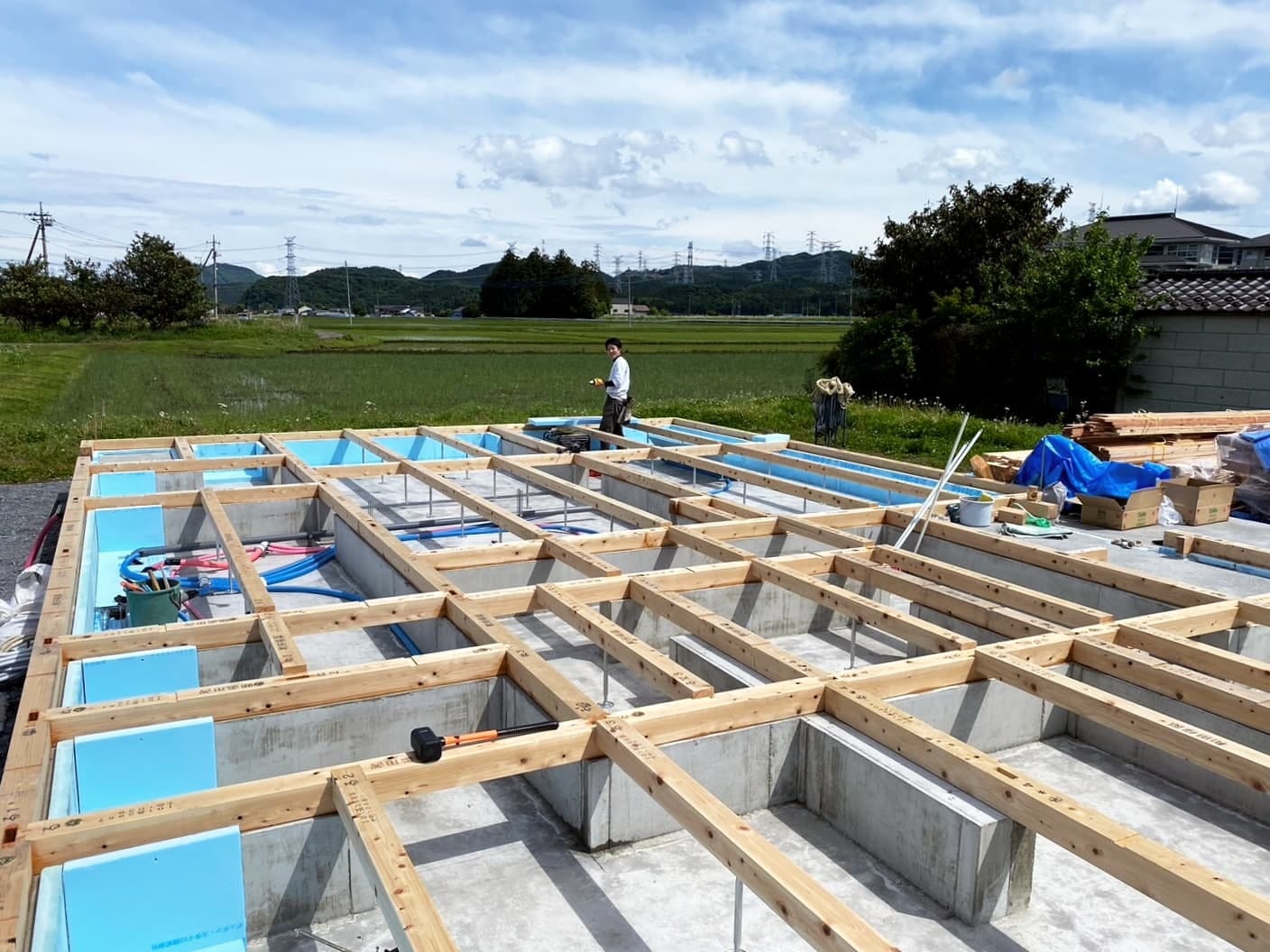 Blog 建て方に向けて|日光平屋の家|小上がりのある家 2024.05.13 基礎工事が終わり、大工さんにバトンタッチ! 建て方に向けて土台敷き作業の様子です。 建て方は、今週半ばを予定しています。 < 前の記事 全て 次の記事 >