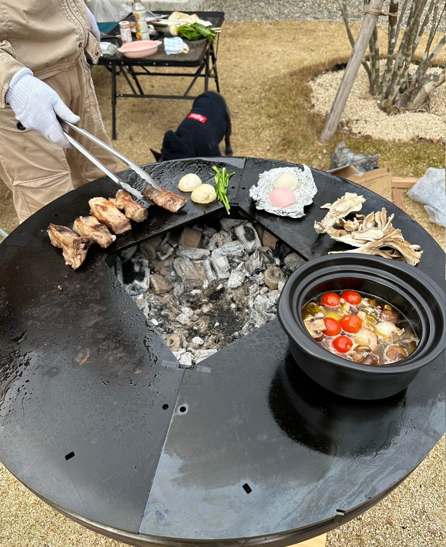 焚き火をしながら360°でBBQができるグリル。