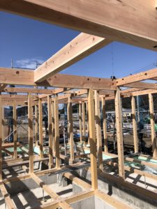 順調に進み、スッキリと晴れ渡った青空の下、気持ちのよい建て方日和となりました。