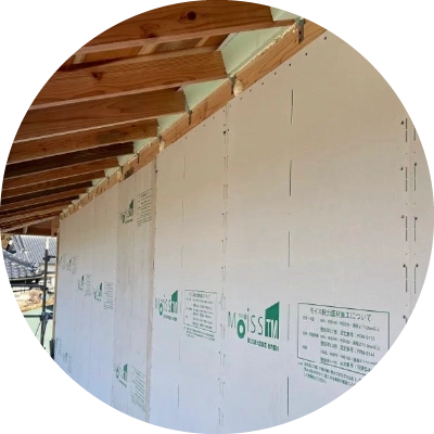 例えば、塗り壁にはシックハウスを起こさない壁材、断熱材は羊毛を使用したもの、